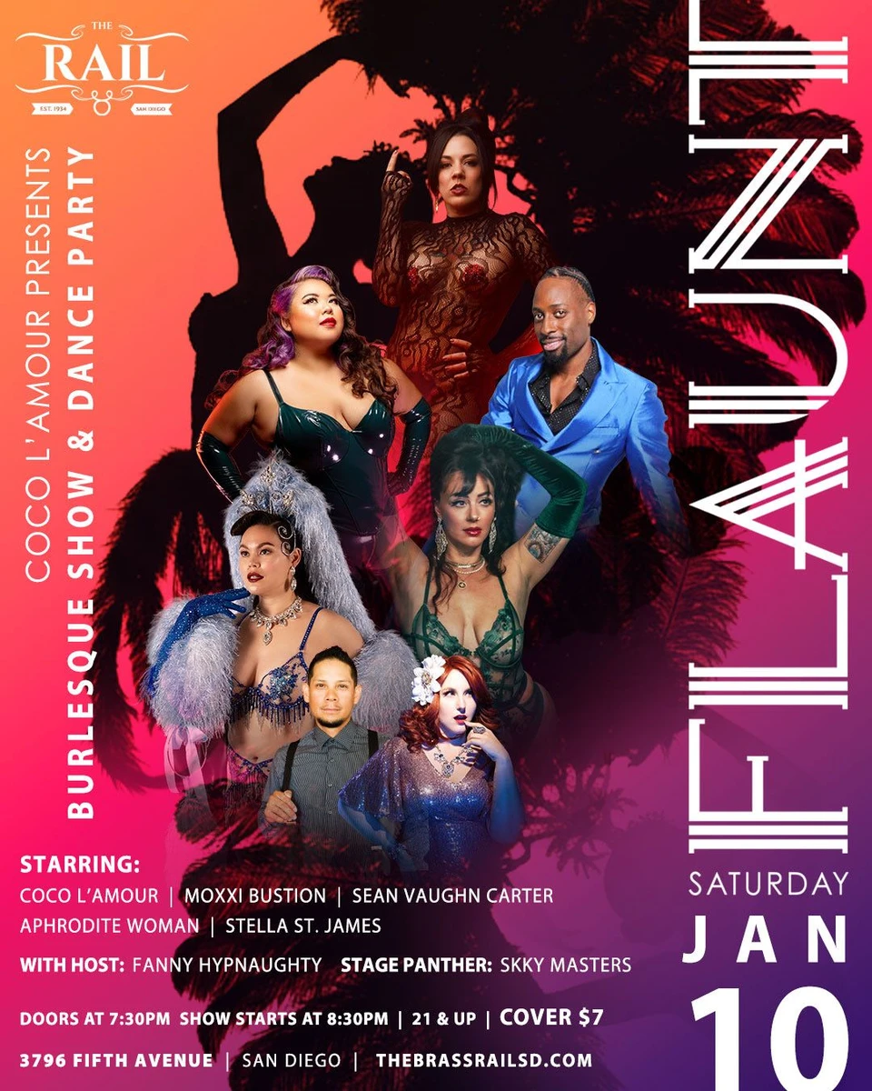 San Diego, we’re serving glamour, sass, and nonstop jaw-dropping performances at Flaunt Burlesque — a burlesque show & dance party you do not want to miss!