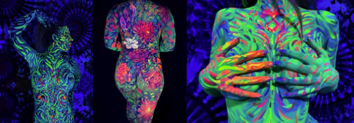 Body Painting: Let your creativity run wild as our professional artist, Anthony Duran, transforms your body into a canvas of glowing art, using UV-reactive paints that shine brilliantly in the dark. Anthony Duran has been a fine art body painter for over 12 years, including studio photoshoots, festivals and play parties. Engage in body painting activities that promote self-expression, allowing your body to be a masterpiece of art and empowerment. With a passion for promoting self love and celebrating the skin you are in, now’s your chance to add a little skin decoration and design for the night. We are allowing photos in this area, Anthony will be offering to take pictures with his camera. If you want to use your phone camera it is allowed here.