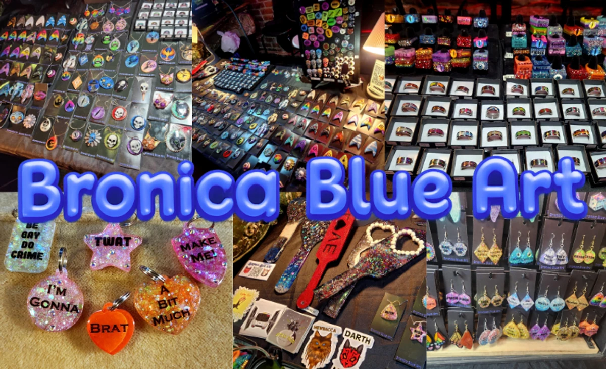 Bronica Blue Art creates unique and original resin jewelry, inlaid rings, and naughty toys.