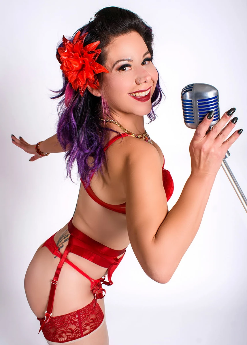 Red Bettie (She/They) is a Bay Area based Queer, Gender Fluid Femmby performer, producer, MC, theater manager and core member of Hubba Hubba Revue. With over 20 years experience as a character actress and deep roots in nerd culture, they bring a unique blend of silly and sexy to what she best describes as "narrative burlesque". As one of Peek partie's newest hosts and an experienced practioner of the night sweats, Red is beyond excited to bring one of their favorite gender bending burlesque acts to "Hot Flash"