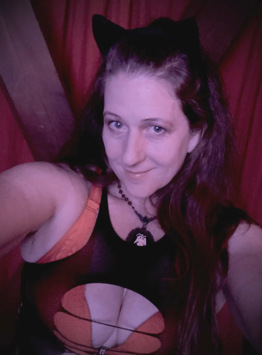 Aurora first captured attention in a LGBTQ fashion show, taking the stage in a metal-chained chest harness that showcased her sunburst nipple piercings while confidently leading her leashed girlfriend across the runway… an early glimpse of the bold, body-positive energy that continues to define her work today. Since then, her path has included dance performances at Pantheacon and time working as a stripper, experiences that shaped her confident and playful stage presence. She also dawned Peeks stage on multiple occasions.