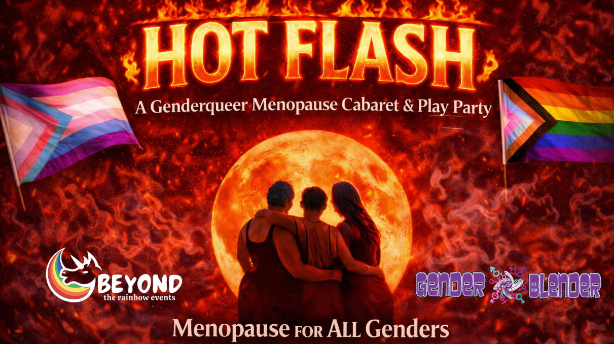 HOT FLASH is a celebratory, erotic, and intentional gathering centering trans, gender-nonconforming, genderfluid, and queer-bodied experiences of menopause and perimenopause. Created in collaboration by Gender Blender, Beyond the Rainbow Events and Lasara Firefox Allen, author of Genderqueer Menopause: Navigating Menopause for Trans, Gender-Nonconforming, Genderfluid, and Other Queer-Bodied Folx