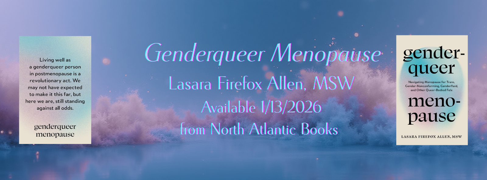 Lasara Firefox Allen, MSW is a genderqueer author, witch, and instigator working at the lush, unruly intersection of queer embodiment, feminist spirituality, sex, and power. They are the author of Genderqueer Menopause, a groundbreaking guide for trans, nonbinary, and other queer-bodied folks navigating the menopause transition and queer aging. Lasara is widely known for pioneering gender-affirming menopause care, especially for trans and nonbinary individuals.