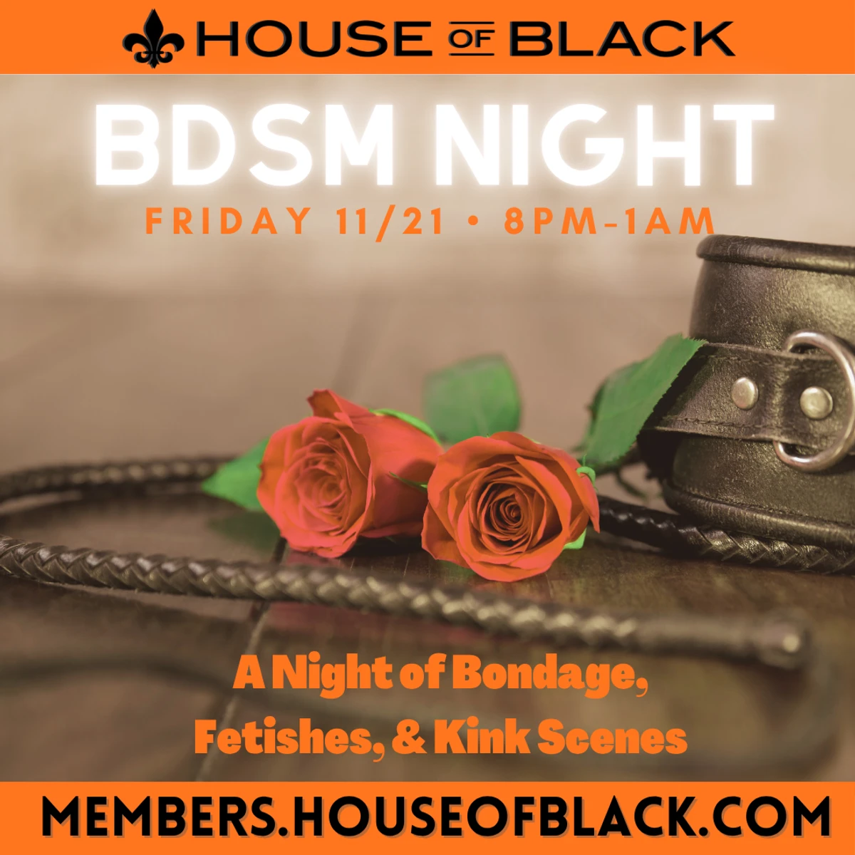 We will go over the rules, etiquette, answer any questions you have, and get you settled in for your first sexy awesome House of Black Party!