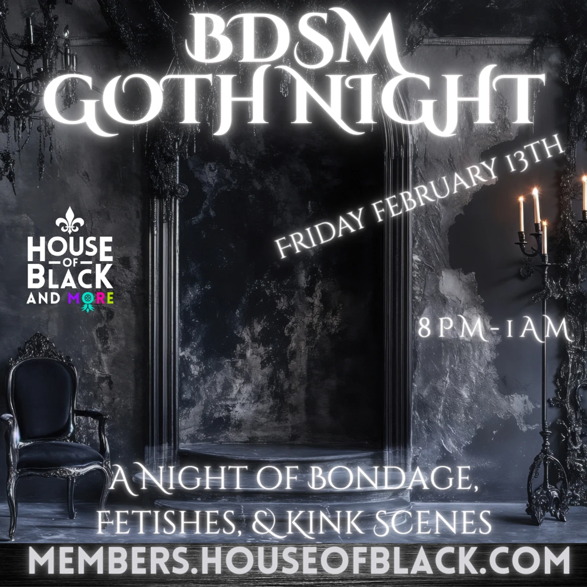 House of Black is a Members Lifestyle & Kink Club which features 7 uniquely styled rooms, a lounge area, 2 bathrooms (w/shower), and a large private outdoor balcony. We host sex positive parties, workshops, discussion groups, game nights & more!