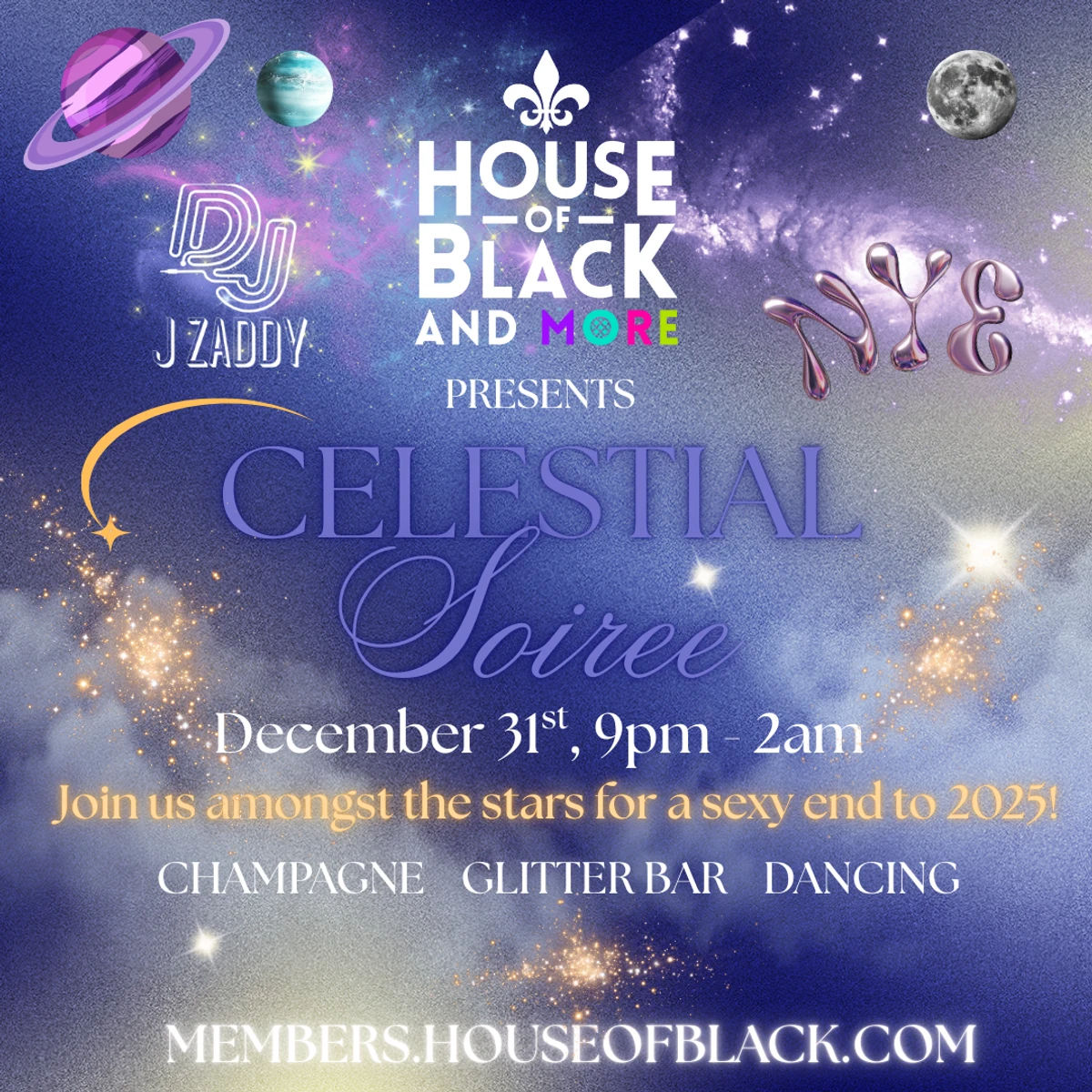 Greetings Earthlings! Join us for a glittering end of year Celestial Soiree you won’t soon forget as House of Black is transformed into a sparkling fantasy set amongst the stars.