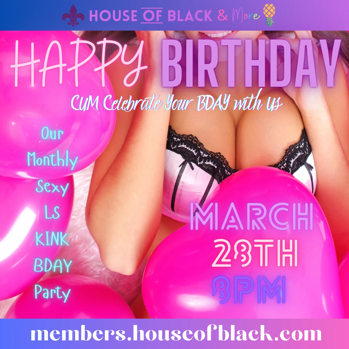 House of Black is a Members Lifestyle & Kink Club which features 7 uniquely styled rooms, a lounge area, 2 bathrooms (w/shower), and a large private outdoor balcony. We host sex positive parties, workshops, discussion groups, game nights & more!
