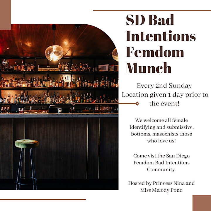 We decided to make our vetting system easier by creating another safe space within the Femdom community. We use to attend lots of different events, classes, and munches because of the decision to vet everyone who attends our parties. Our parties are for those who have been vetted by the two hosts of @SDBADINTENTIONS . We value the safety and privacy of all attendees. Now it will be easier will at our new event! We love attending other Femdom events and non-Femdom events! However, it would be easier for us to meet you in a vanilla, public and no-pressure setting to just hang out and have some fun! We feel as restrictions goes down, this will be a great time to meet up! Both of the hosts have been vaccinated and will provide an outdoor space and social distance for attendees.