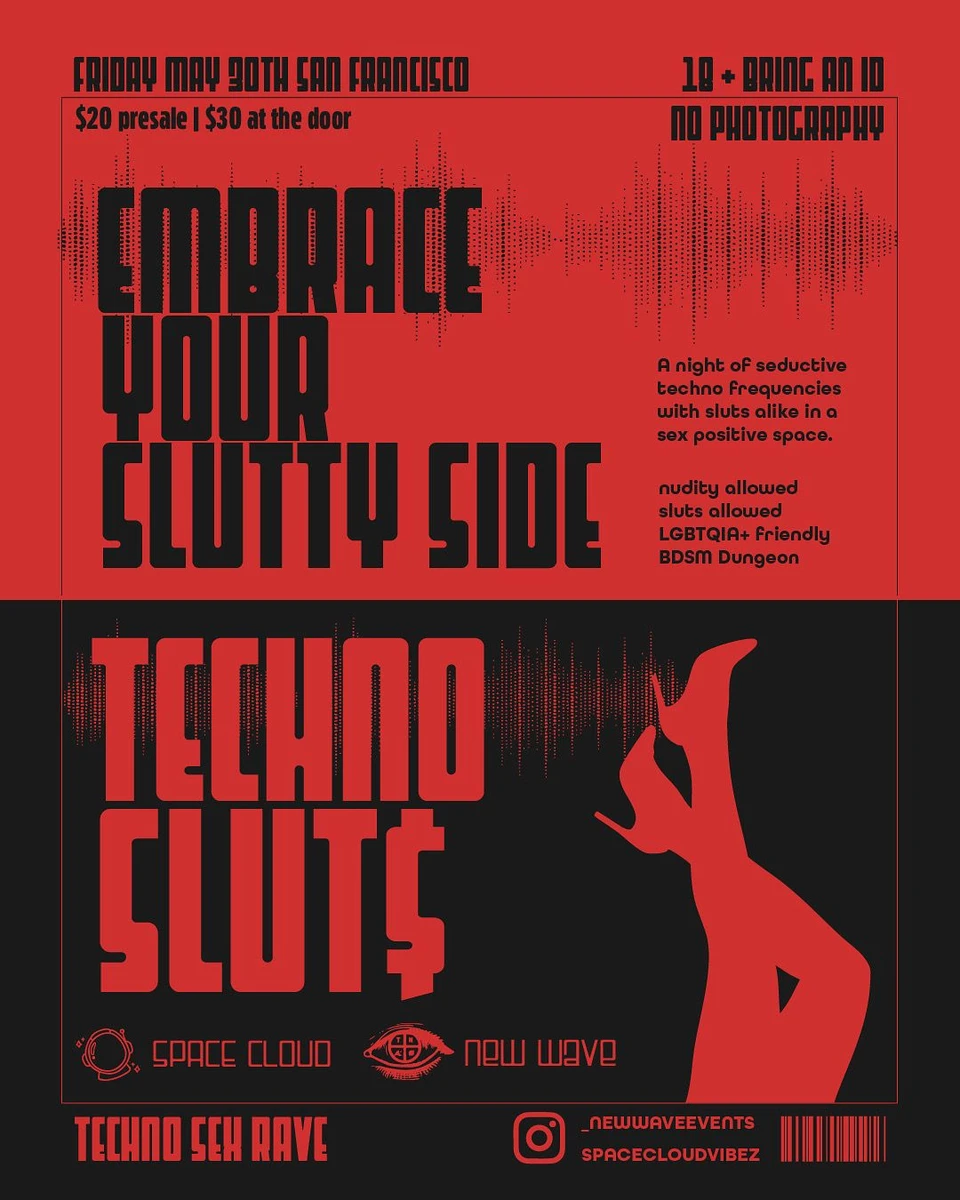Nudity, kink, and sexual activity will be present in a sober and sexy space— THIS IS AN SEX-POSITIVE RAVE!