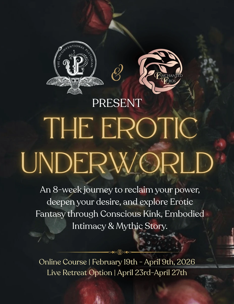 In this creative cohort, we’ll use archetypes, playful self-inquiry, and skill-building to embark on a mythological storytelling journey through the Underworld of our erotic fantasies to:
